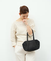 なにより、ファスナーがかなり深い位置までほどこされ、開口部がゆったり開くため、中身が一目瞭然。ショルダーストラップもたっぷりと長さがあるため、肩に掛けたまま、スマートに荷物を出し入れできます。