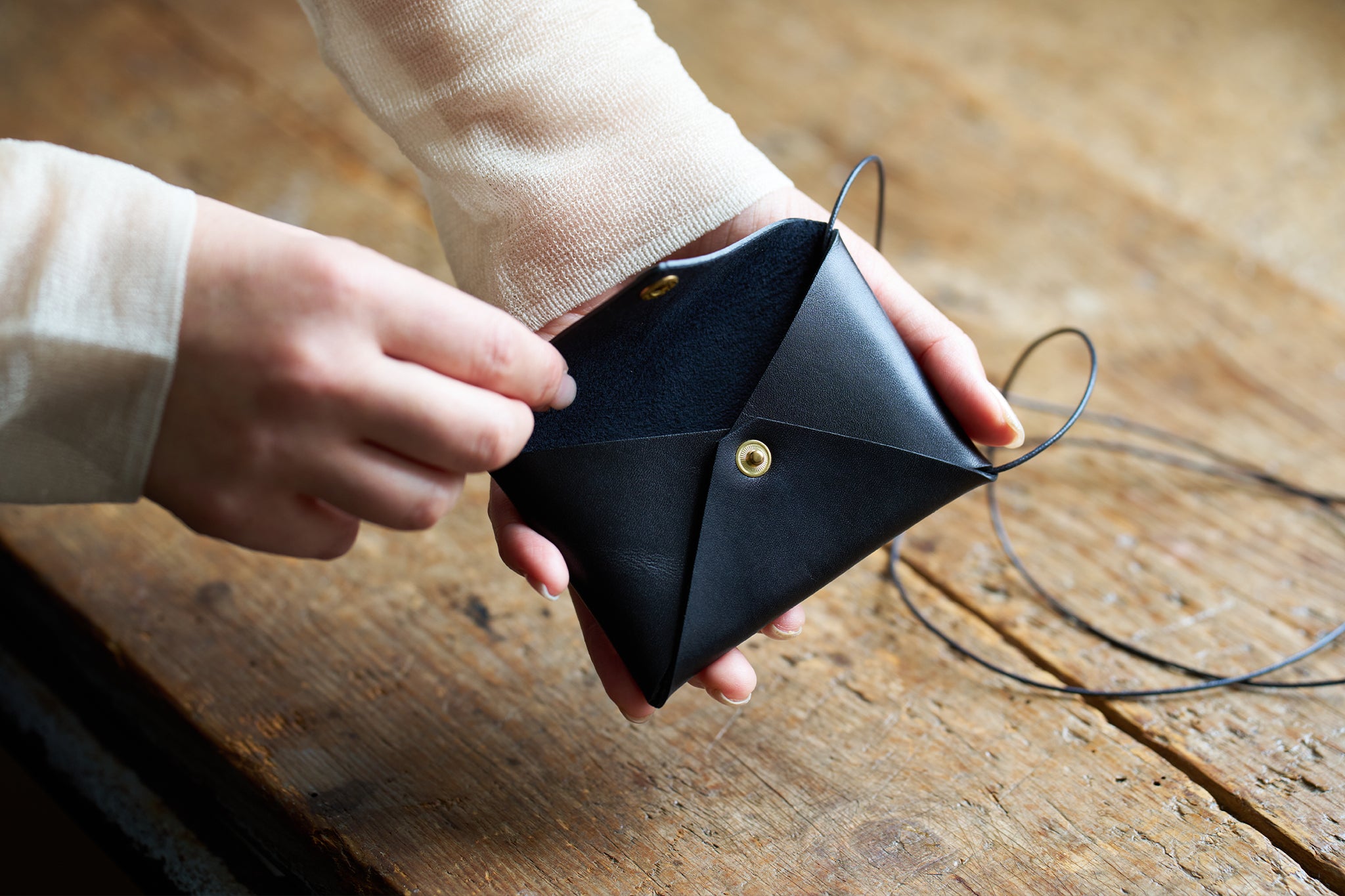 製品を長い間ご使用にならない場合には、風通しの良い空間で保管をするようにして下さい。湿度の高い場所での保管はカビの原因や革が変質する可能性が有りますので避けてください。