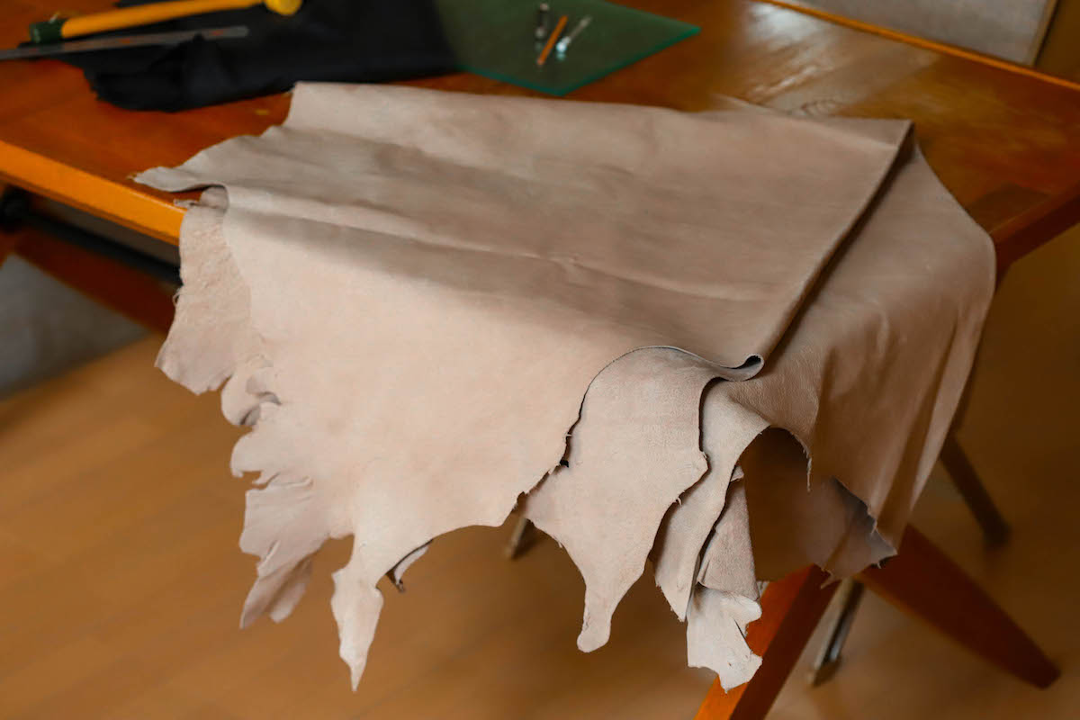 天然シボを活かすために、最小限の染料とオイルで鞣してあります。個体差やシボのムラも加工しすぎず、自然のゆらぎもあえてそのまま届けたいという想いからです。