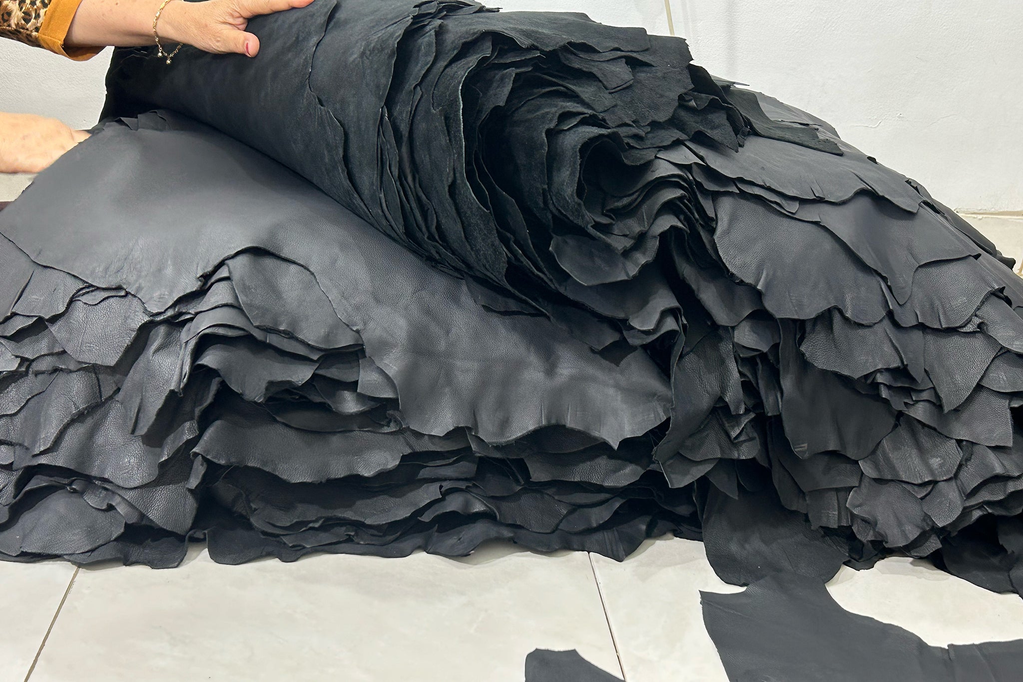 当時は革といえば牛革で、傷や色ムラのない、ひと目見てわかるクオリティがもてはやされていました。そんななか独自の価値を求めて素材を探し、めぐりあったのがハリーです。比較的キズや色ムラが多く、一般的に裏材として多く使われていた素材。ですがとにかく軽く、密度が高いため、薄くても丈夫であること、通気性のよさ、布のようなしなやかさに、私たちは可能性を感じたのです。部位による密度や質感の違いや染料を研究し、原皮をできるだけ無駄にしない方法を編み出すことで、いまではその魅力が多くのひとのもとに届いています。