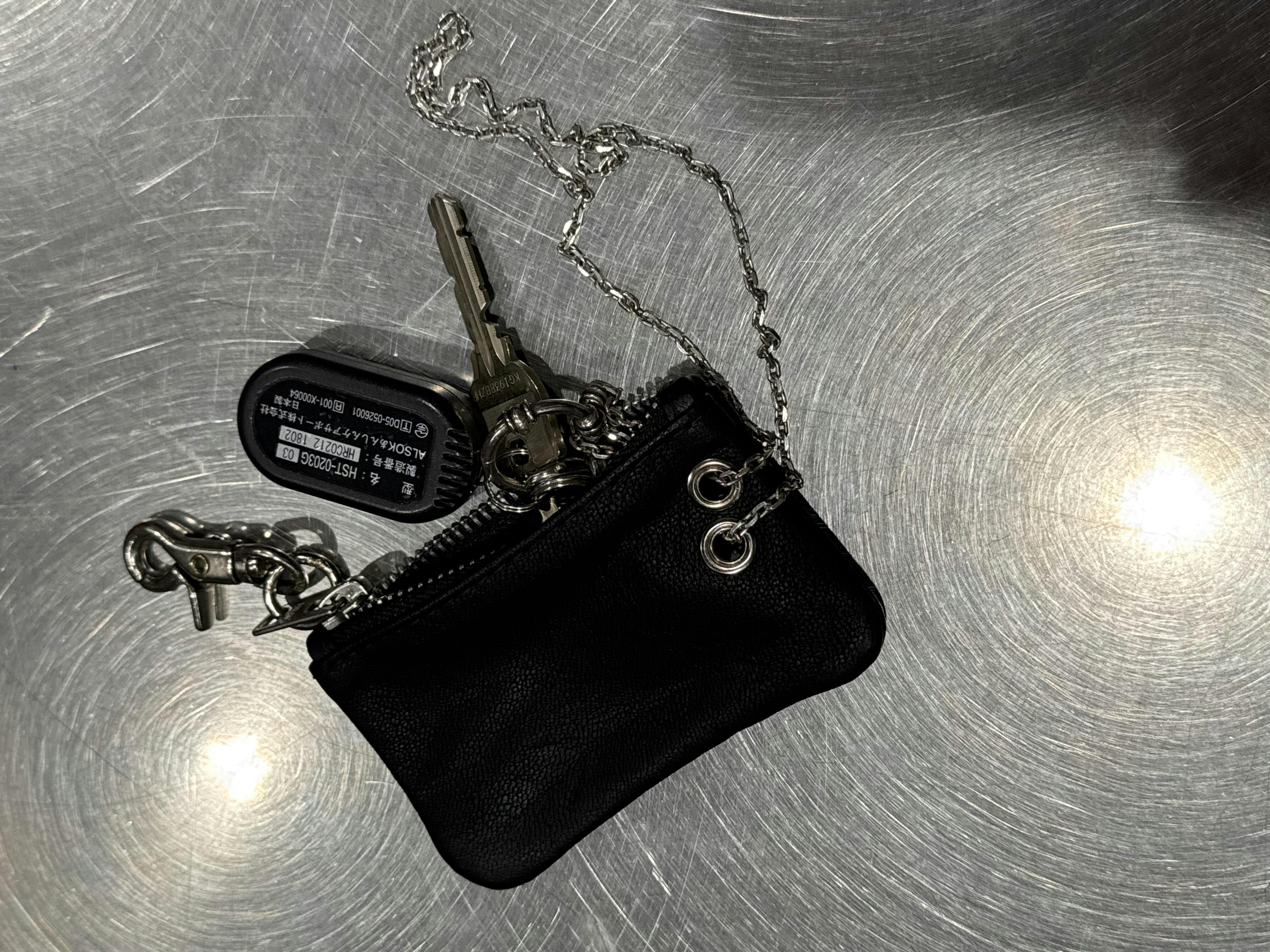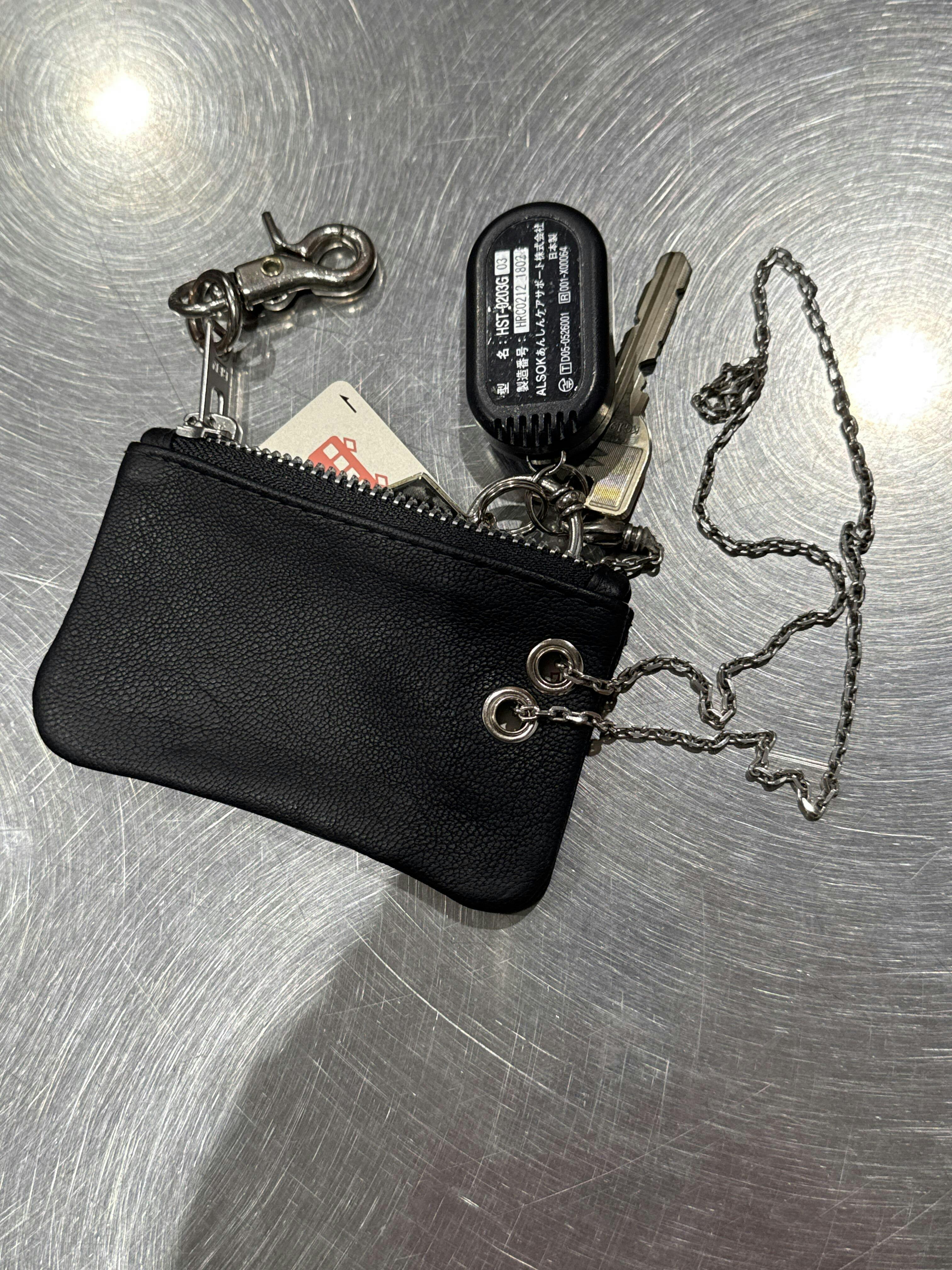 ポーチ内側のチェーンに、鍵を通せばポーチの中に鍵が収まります。定期や家の鍵など、大切なのものは1箇所に。キーケースとしても、カードケースとしても使える優れもの。