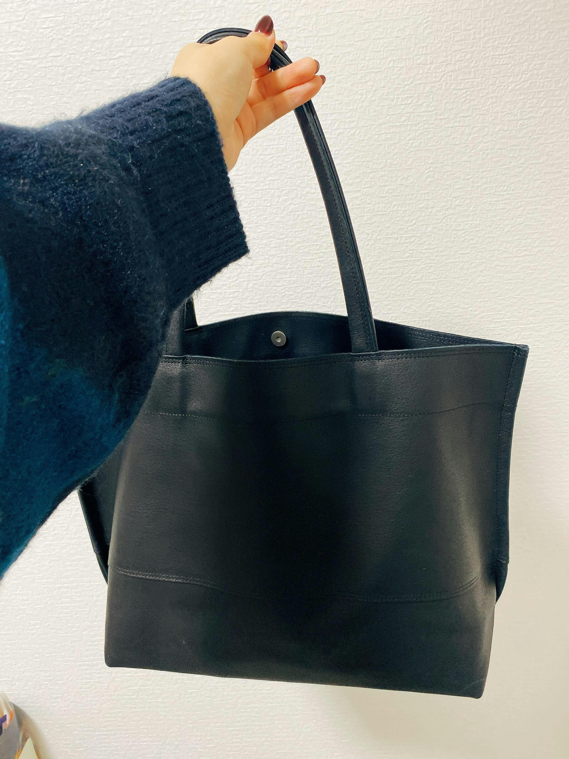 日常使いにもお出かけにもぴったりな大きさで、軽くてクタッとした柔らかい感触がとても気に入ってます。色も重くならず好きです。