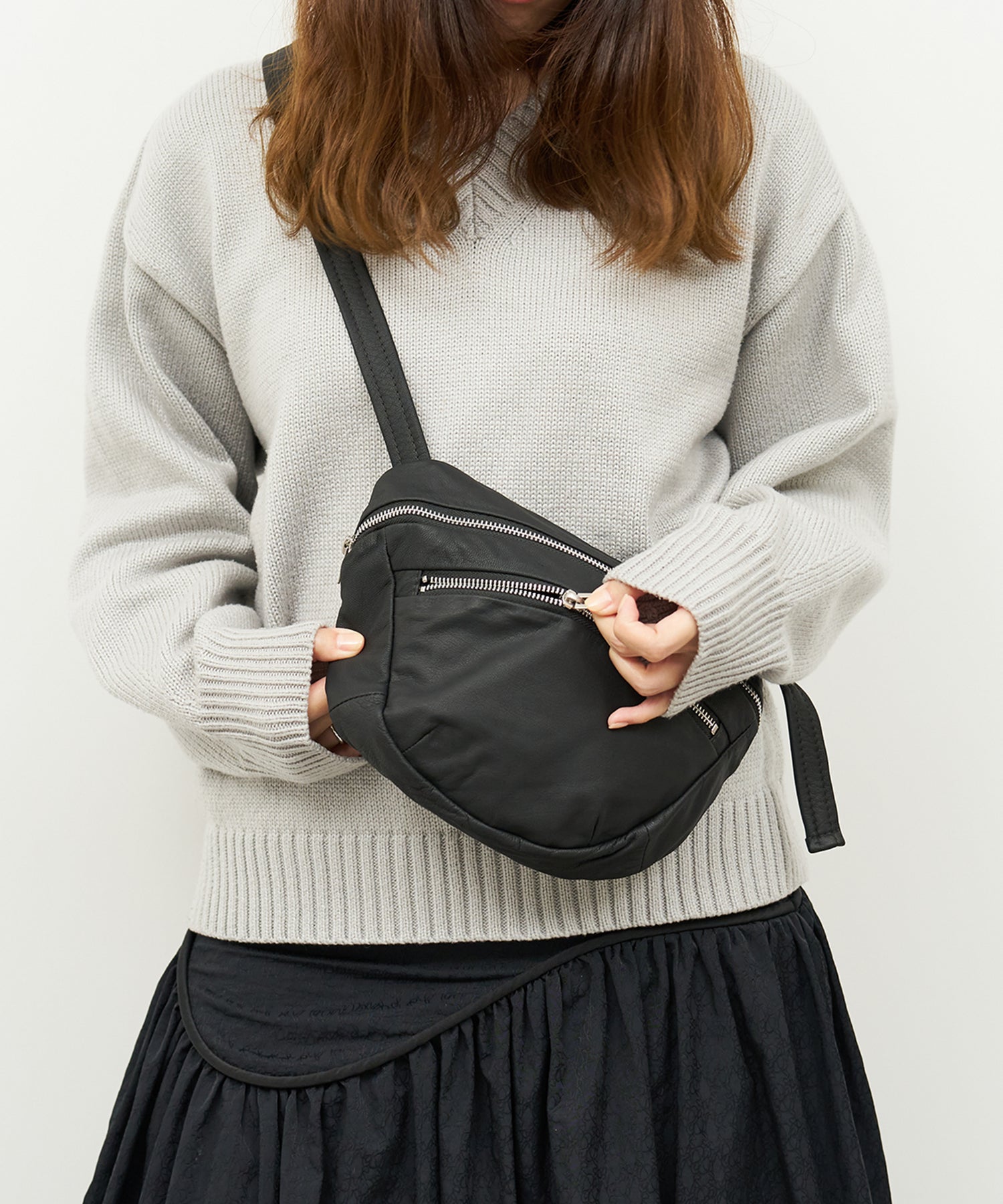 #11/ ラウンドスリングバッグ (black) / やぎ革・ベアー