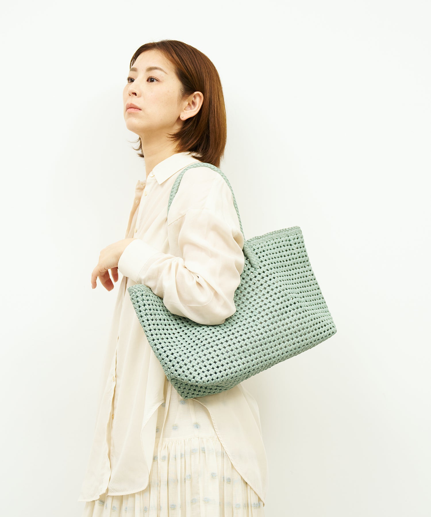 ゴートメッシュシリーズは、形のバリエーションも豊富です。「バスケットM」は、日常使いしやすい大きさのトートバッグ。丸手のハンドルが上品な印象をつくります。