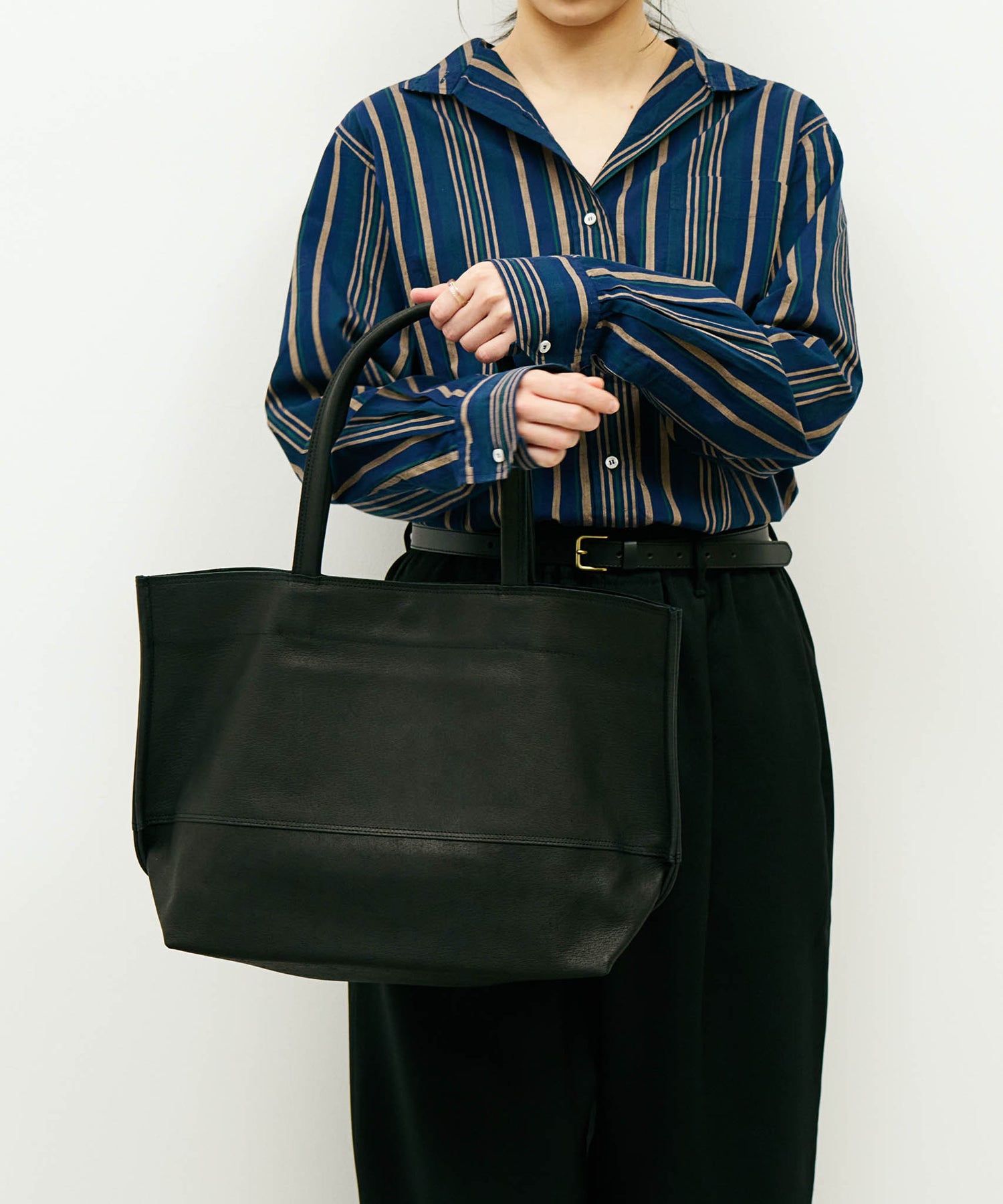 軽量で強度のあるピッグスキン・ハリーで仕上げたワイドトートは、ランチバッグに比べ、ゆったりとした収納スペースを備えたビジネスシーンにも選ばれているトートバッグ。シンプルなデザインと構造だからこそ、ON・OFFを問わず様々なシーンで活躍します。