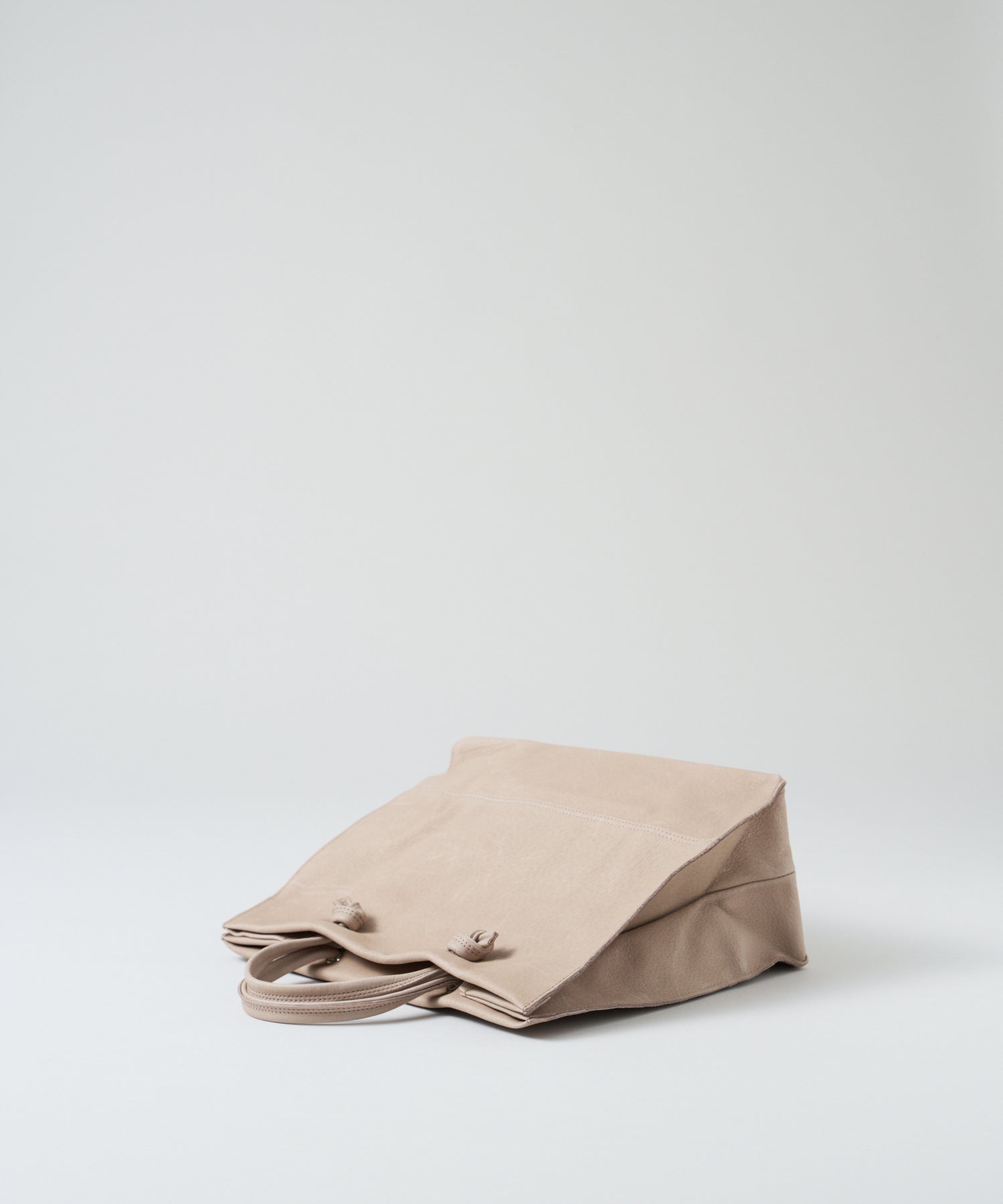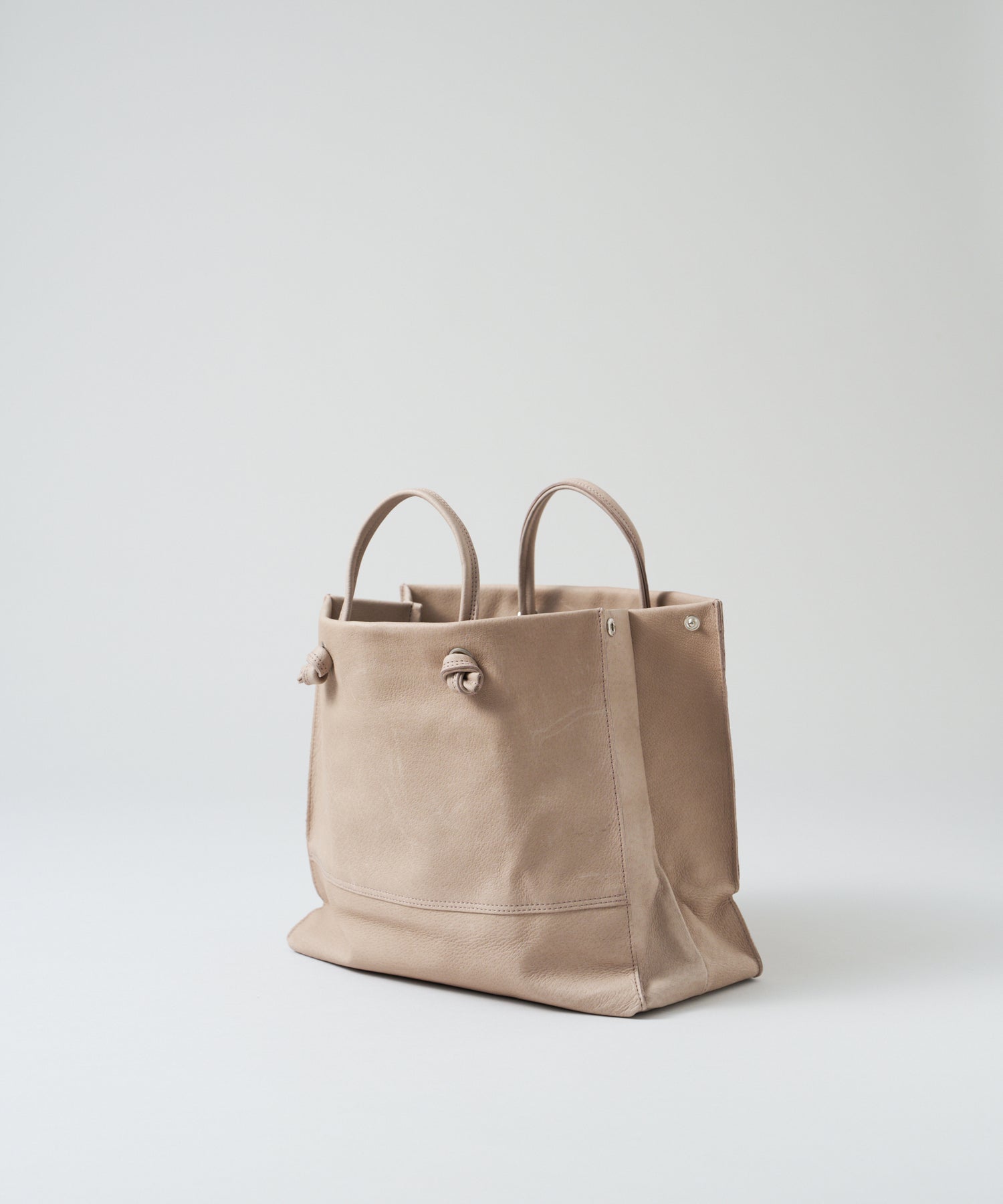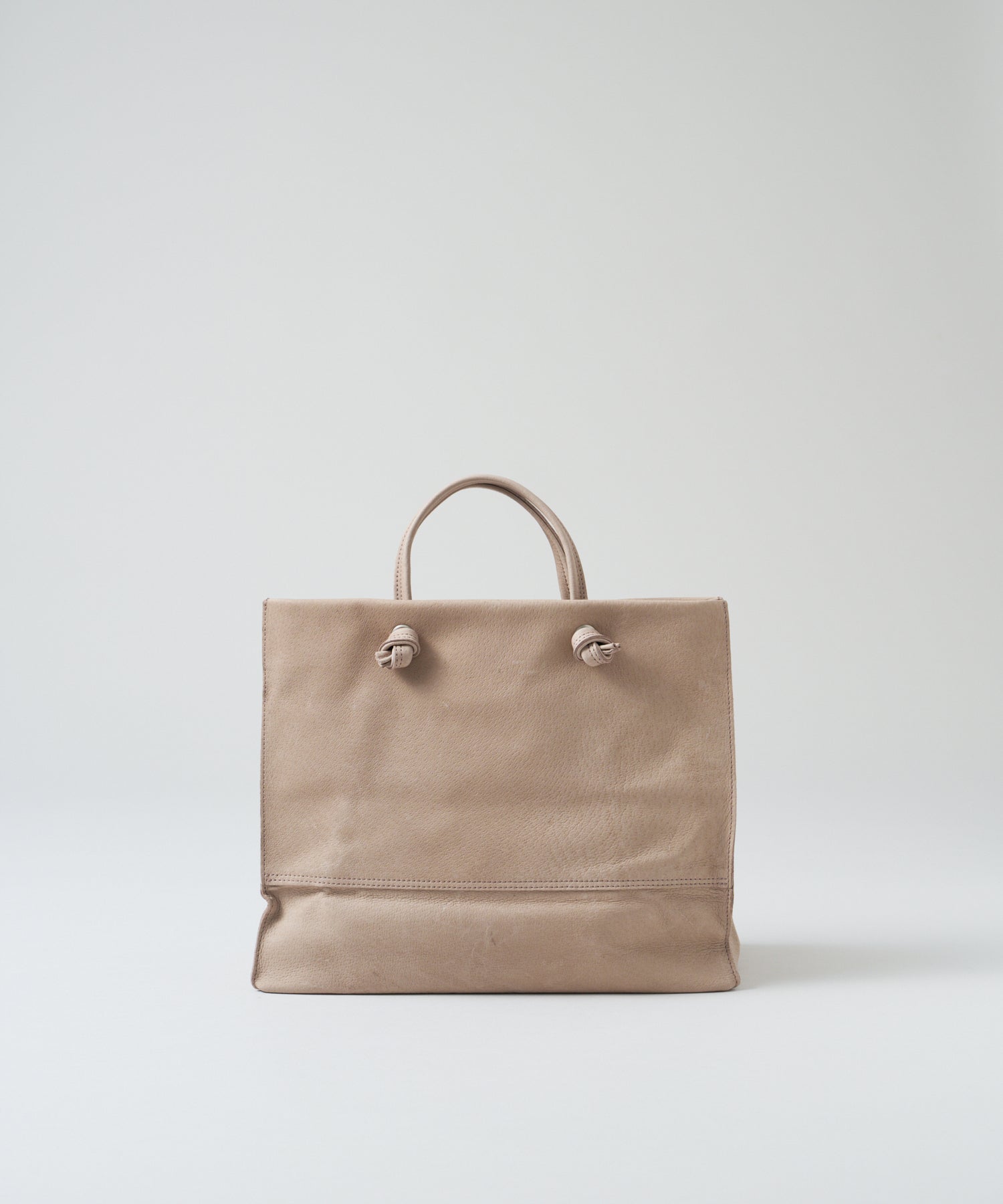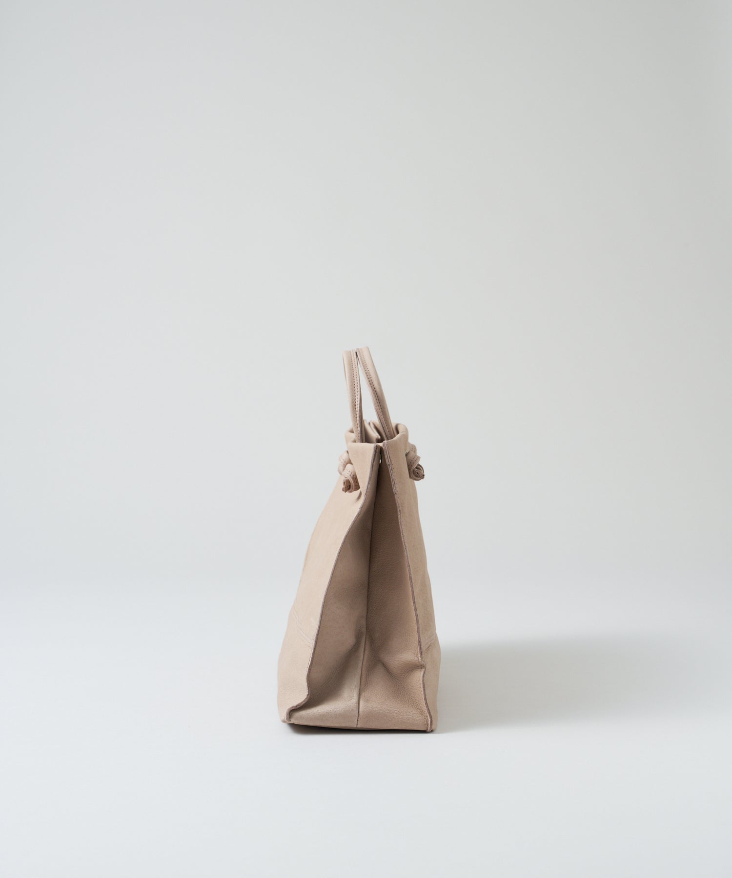 紙袋型のレザーバッグ。底面には柔らかい芯材を使用、紙袋らしいシルエットをキープします。