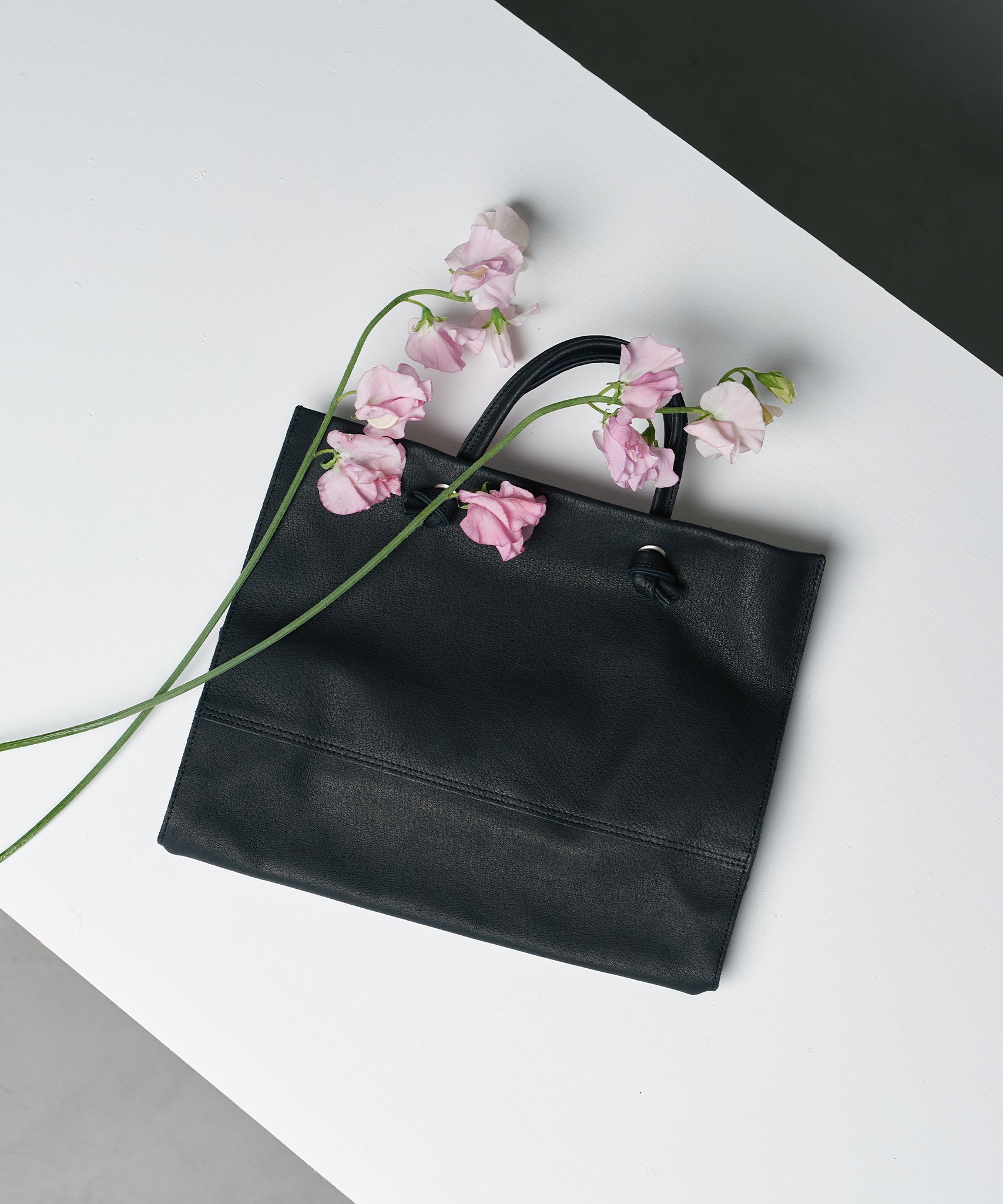 紙袋型のレザーバッグ。底面には柔らかい芯材を使用、紙袋らしいシルエットをキープします。