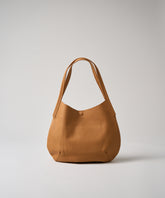 バッグの上部は縫い合わせていません。そのため、肩掛けしたまま大きく開くことができ、中身を出し入れしやすいのも特徴です。