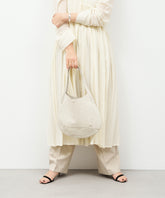 ハリーといえば「ランチバッグ」が代表モデル。その、何でも入れられる気軽さに比べると、「サークルトート」は最低限の荷物を持ち歩くのにちょうどいいサイズ。あえて“控えめに持つ”というエレガントな姿勢を気分を、そっと支えてくれるようなバッグです。