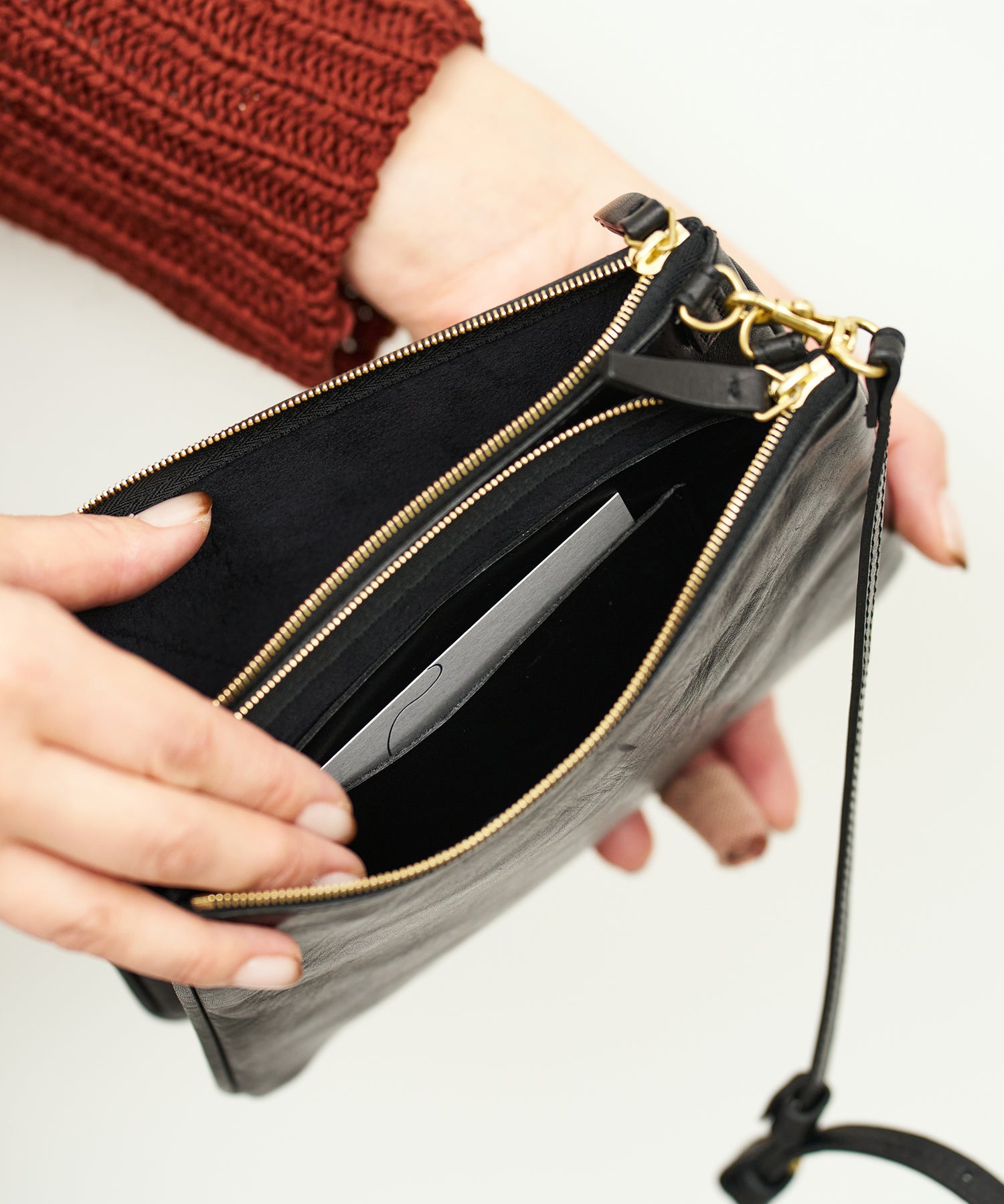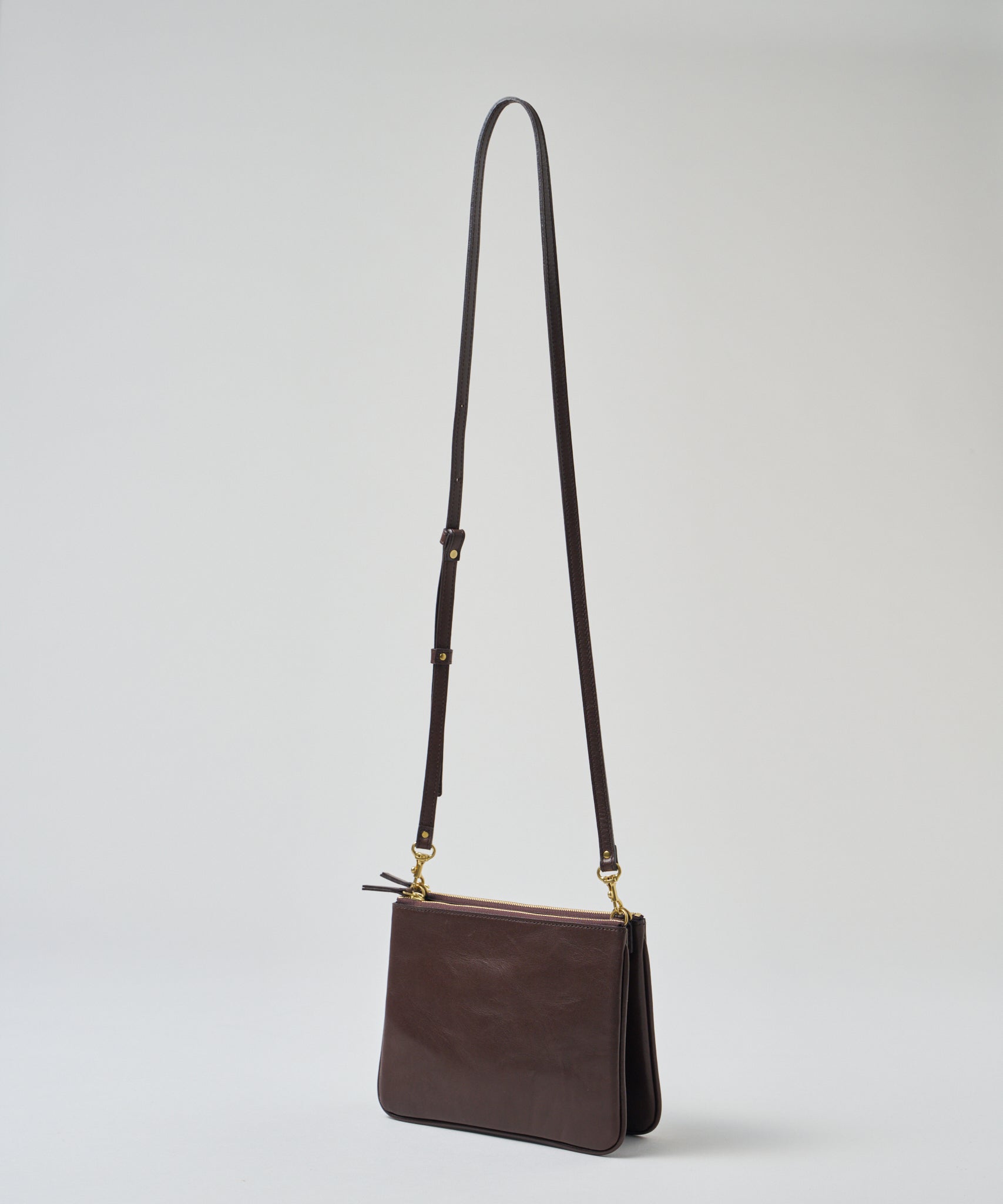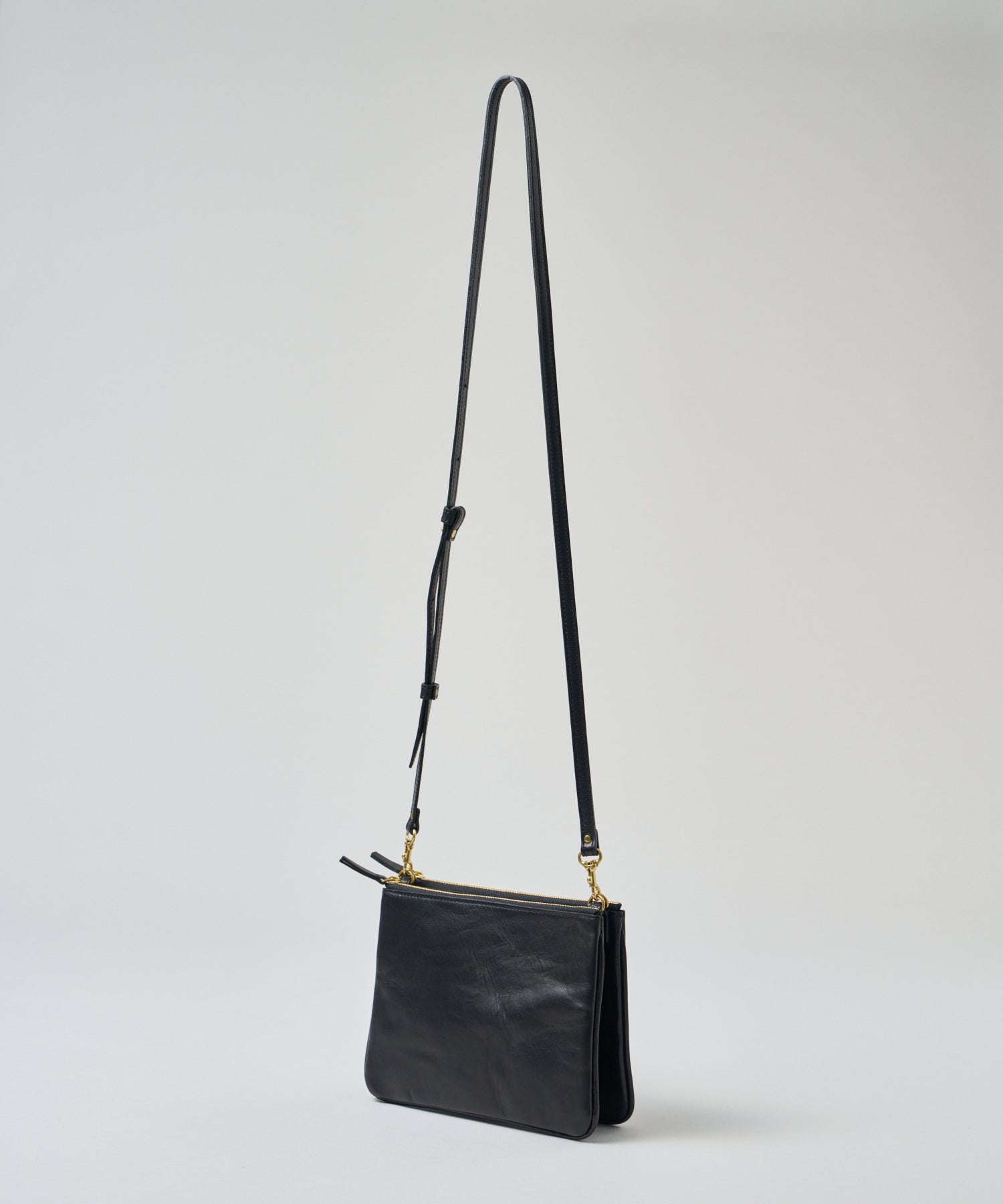 アジャスター付きのショルダーストラップは、端正なつくりで、それ自体で存在感があるため、たとえばRENの「コインポケット」や「コインパース」を取り付けたり、キーホルダーとして使うのも素敵です。