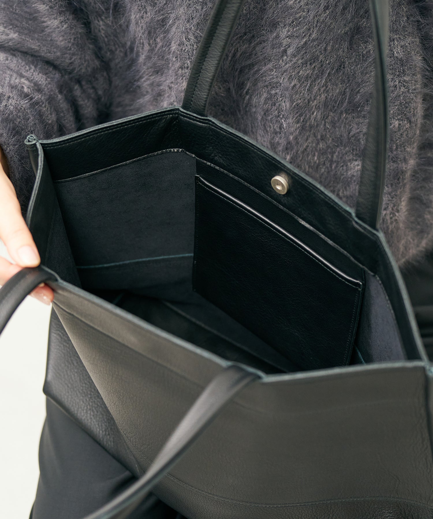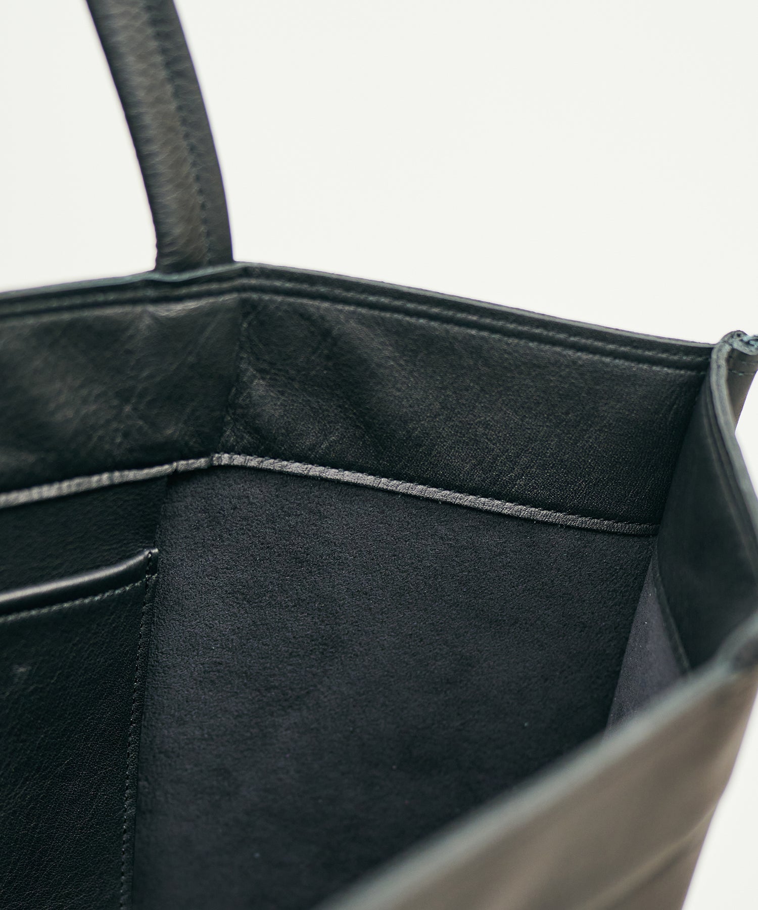シンプルなデザインだからこそ、さまざまな用途とシーンに馴染むRENの「ワイドトート」素材の長所を活かし、バッグとして必要なパーツを最小限に構築することで、軽さにもこだわり仕上げています。レザーでありながらも、布袋のような感覚。レザーバッグは重くてかたい、そんなイメージを覆すトートバッグです。