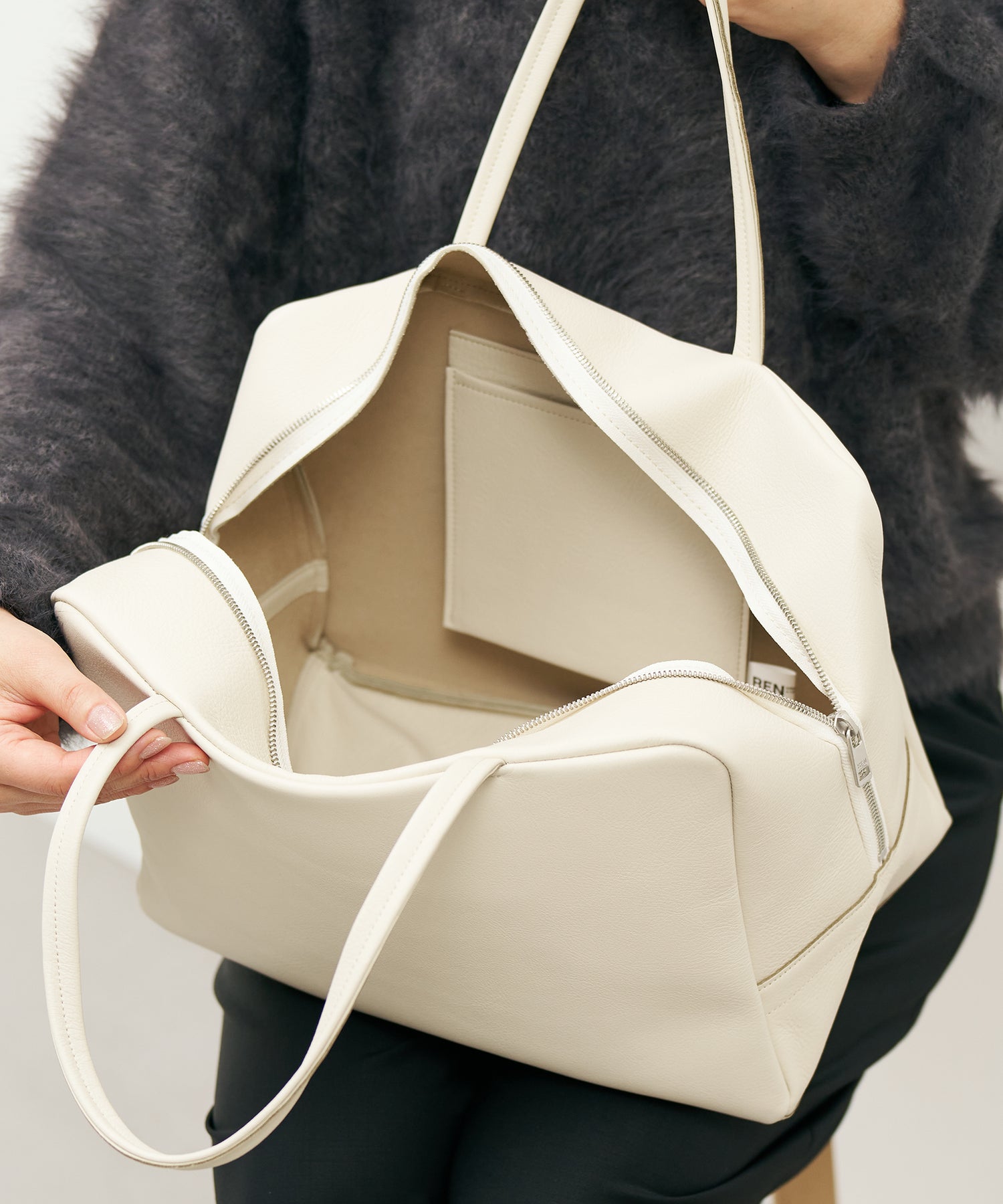 天然皮革のため、一枚ごとに表情が異なります。生きていたときについたキズや、シボ、色ムラがある革も、個性のひとつとしてRENでは捨てることなくバッグを作っています。キズは消えることはありませんが、つかうほど革の表面にツヤが生まれ、キズや色ムラも馴染んでいきます。キズや色ムラが理由による、商品の返品や交換はできませんのでご了承ください。