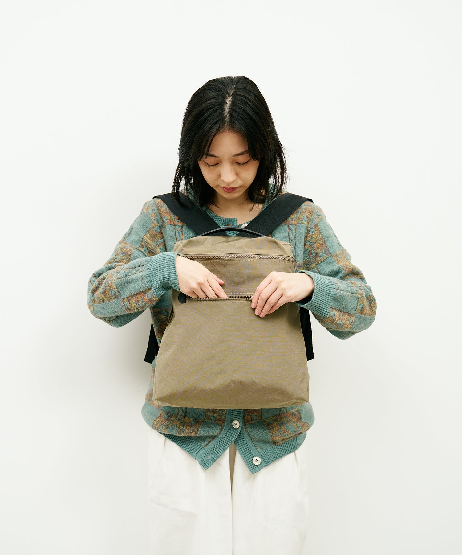 背負った時にもっともバランスよく見えるよう、フォルムは上部がやや細くなった台形型に。このフォルムが温かみのある生地の質感と調和して、やわらかな表情をのぞかせます。