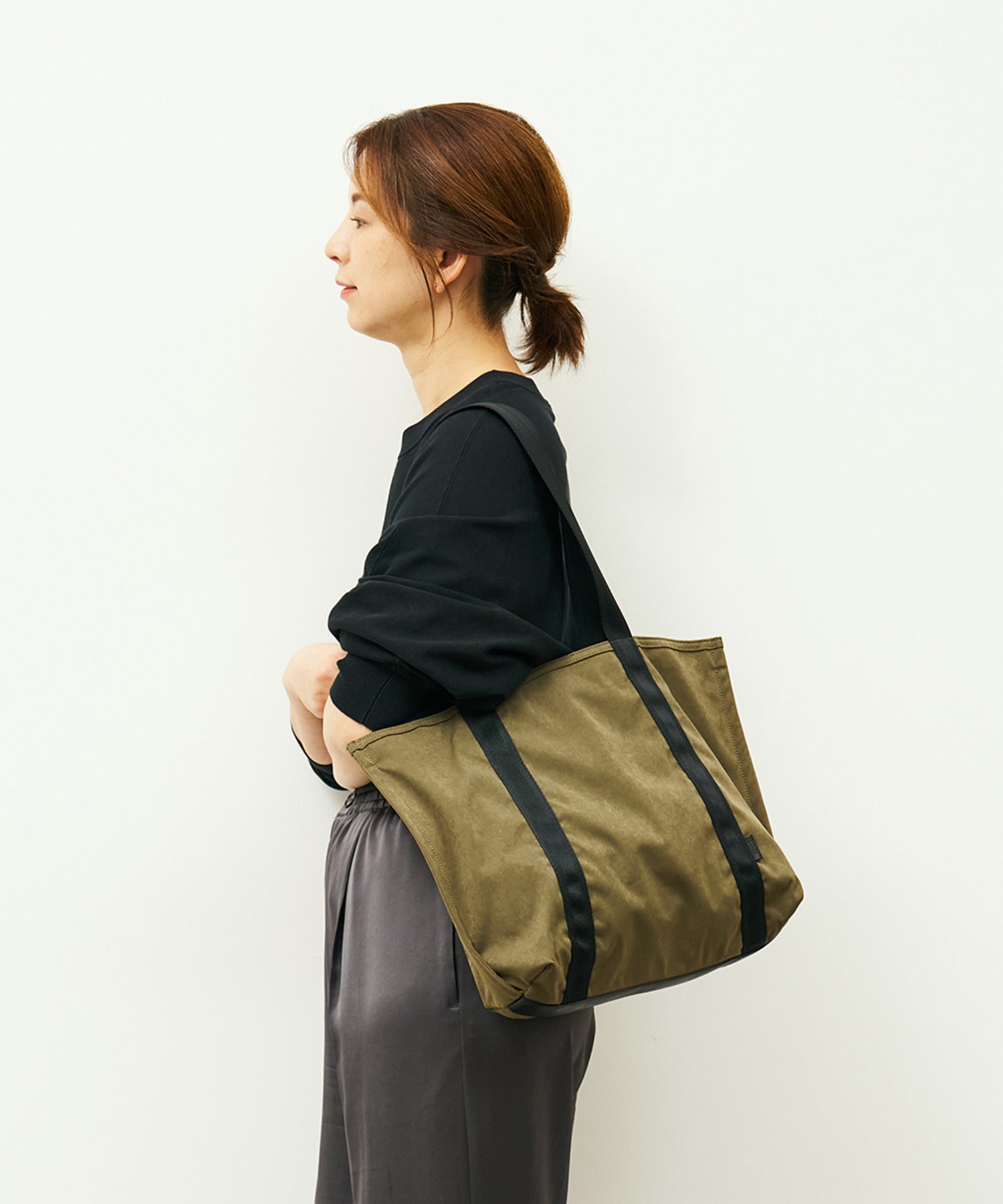 そうした機能性に加えて特筆すべきは、スエードやヌバックにも似た“布”らしからぬタッチ感、スモーキーな表情を持つこと。使い込むとアタリが生じるという特徴にも、可能性を感じました。