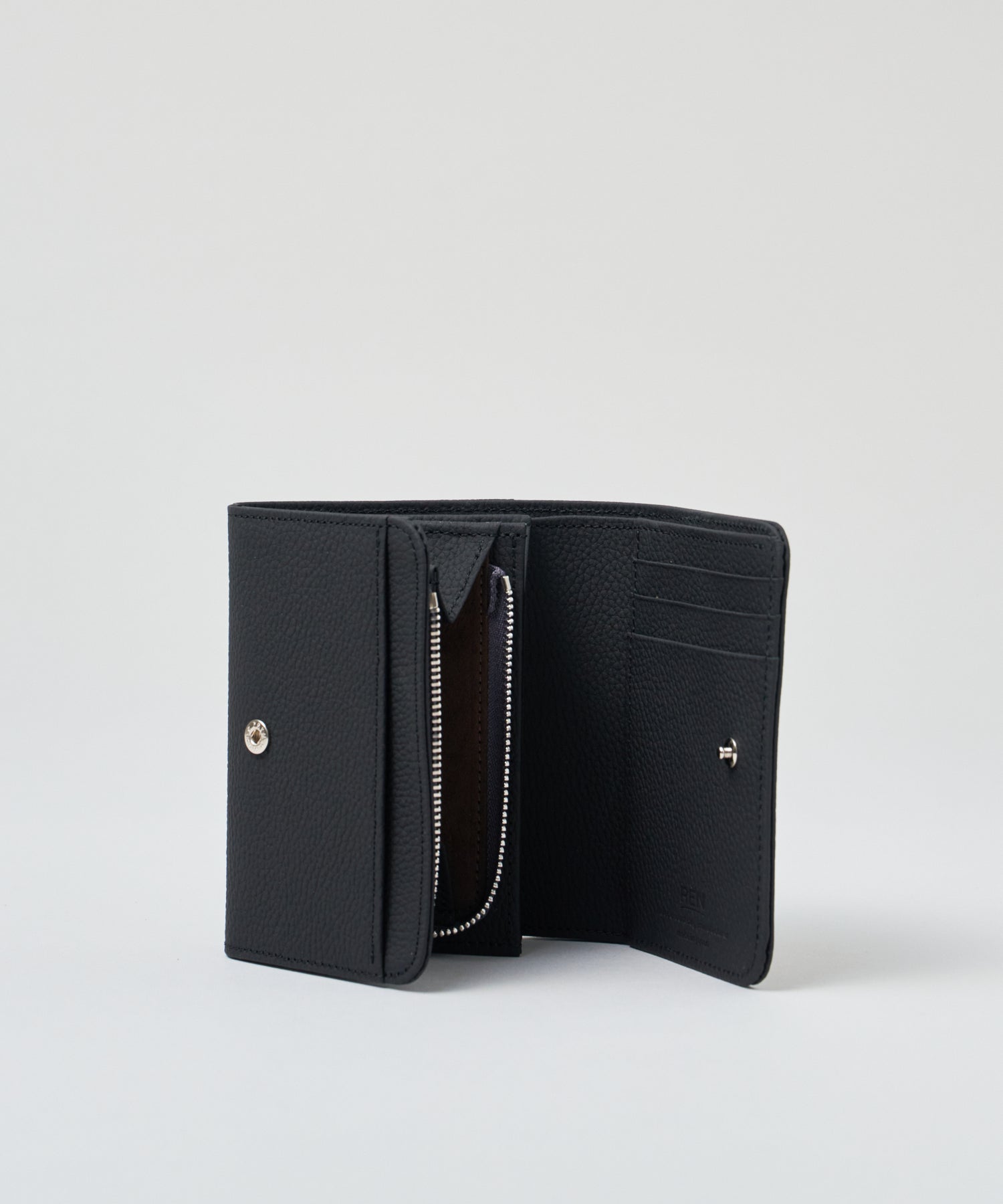 「小さい」とはいっても、一般的な二つ折り財布と比べると容量があり、でもたんに“大きいから多く持てる”だけが魅力ではありません。 小銭入れはL字のファスナータイプで、中にはマチと仕切りがあります。