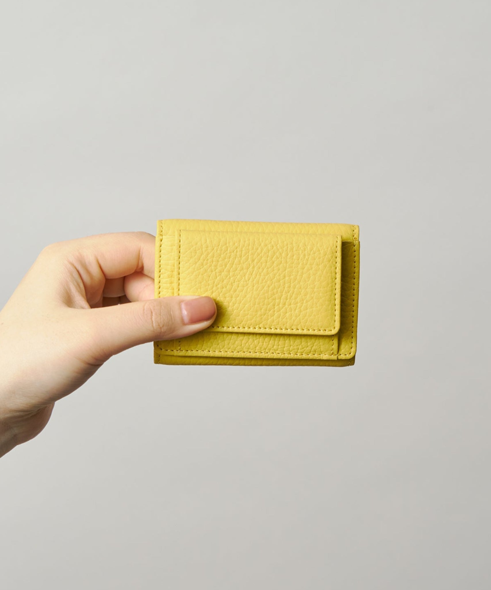 手のひらサイズの「ミニウォレット」コンパクトな設計ながら、コインスペース、カードスペース、お札のスペース、それぞれの収納スペースが確保されているところも、使いやすさのポイントです。小さいけれど使いやすさは損なわない、そんな工夫が使い心地の良さにもつながっています。