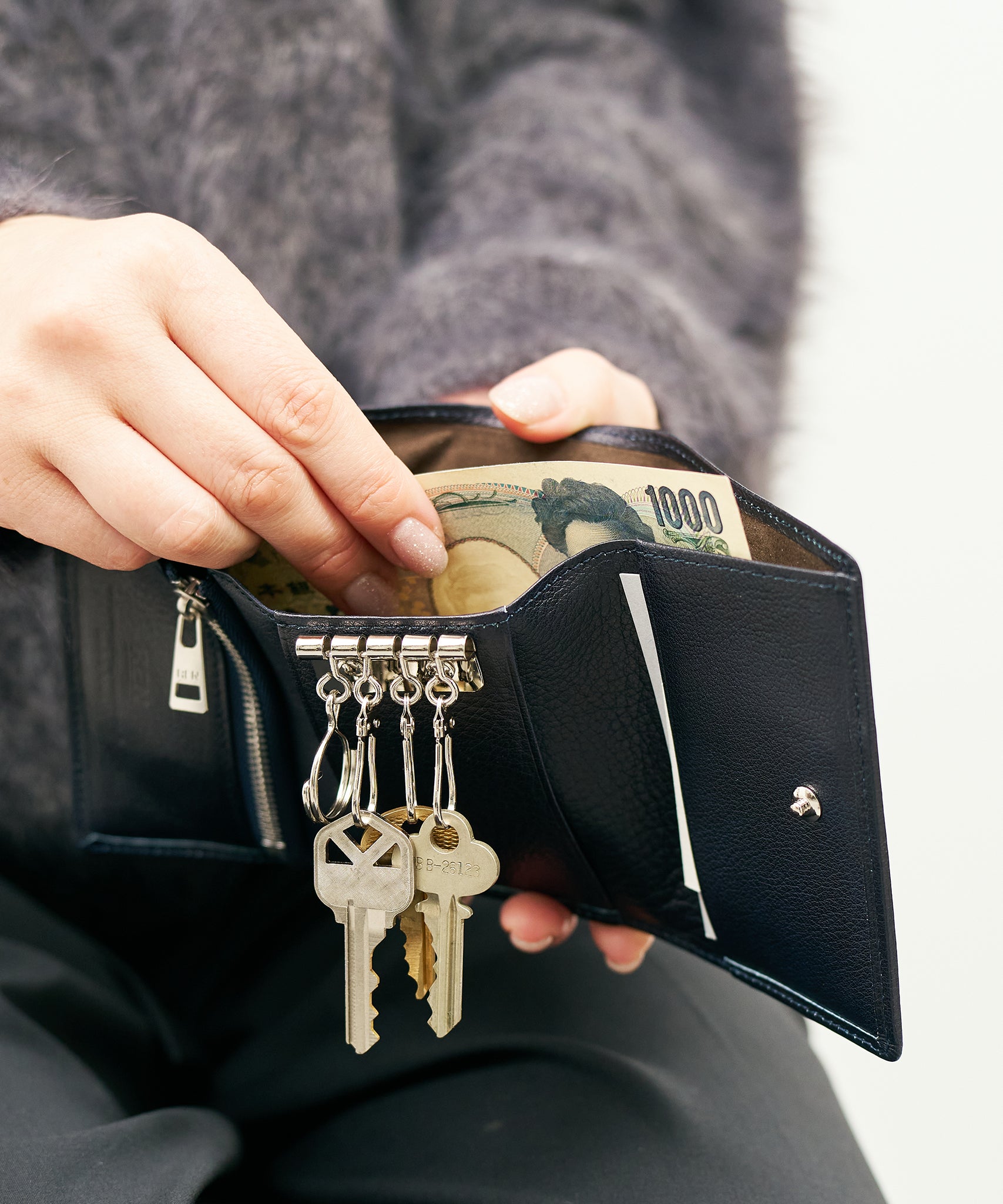 水牛特有のしっかり個体差のあるシボ、荒々しさを備えている反面、きめ細かい肌目は、上品な手触り。本来はデリケートな手袋などに使われることも多い革ですが、私たちはあえてさまざまな製品にのせることにも面白みを感じています。
