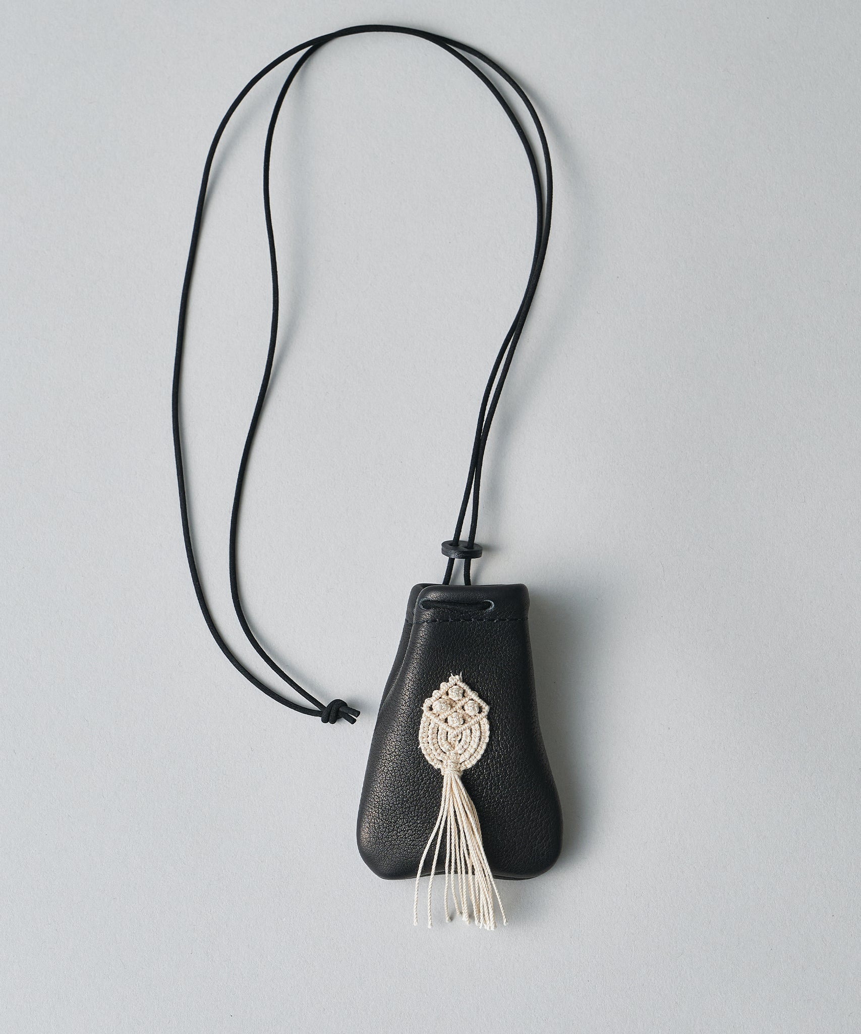 そして、今回RENのレザーと、松田さんの感性豊かなアクセサリーが響き合うものを作りたい。そんな想いから生まれたのが、この「アミュレットポーチ」。素材には、上質なベビーバッファローレザーを採用。カジュアルになりすぎず、品格を保ちながら、様々なスタイルに溶け込むよう仕上げました。