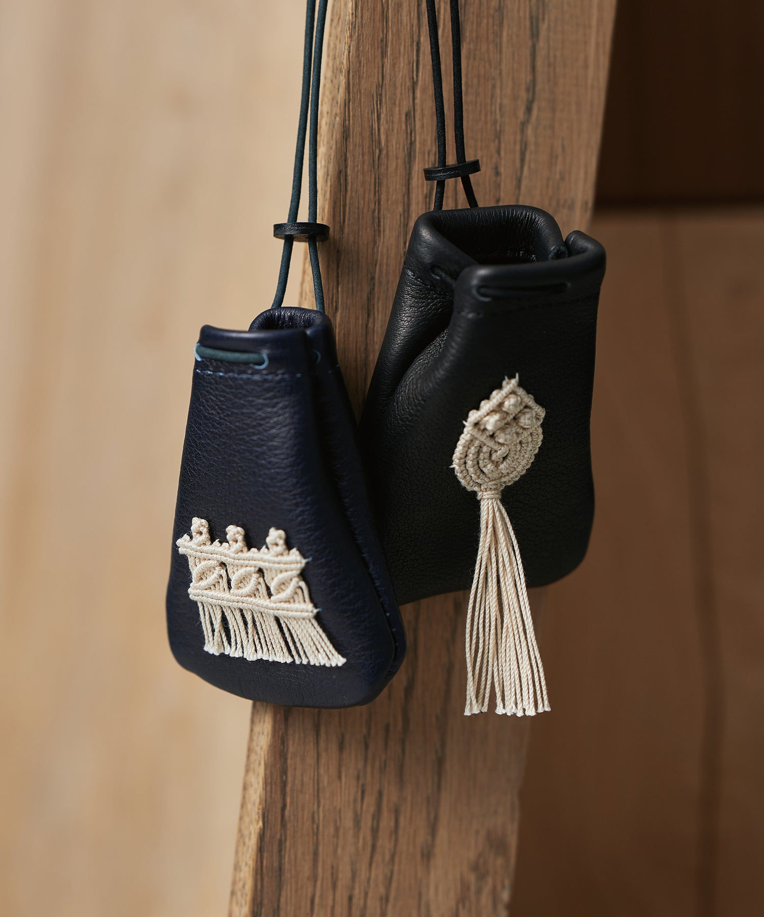 そして、今回RENのレザーと、松田さんの感性豊かなアクセサリーが響き合うものを作りたい。そんな想いから生まれたのが、この「アミュレットポーチ」。素材には、上質なベビーバッファローレザーを採用。カジュアルになりすぎず、品格を保ちながら、様々なスタイルに溶け込むよう仕上げました。
