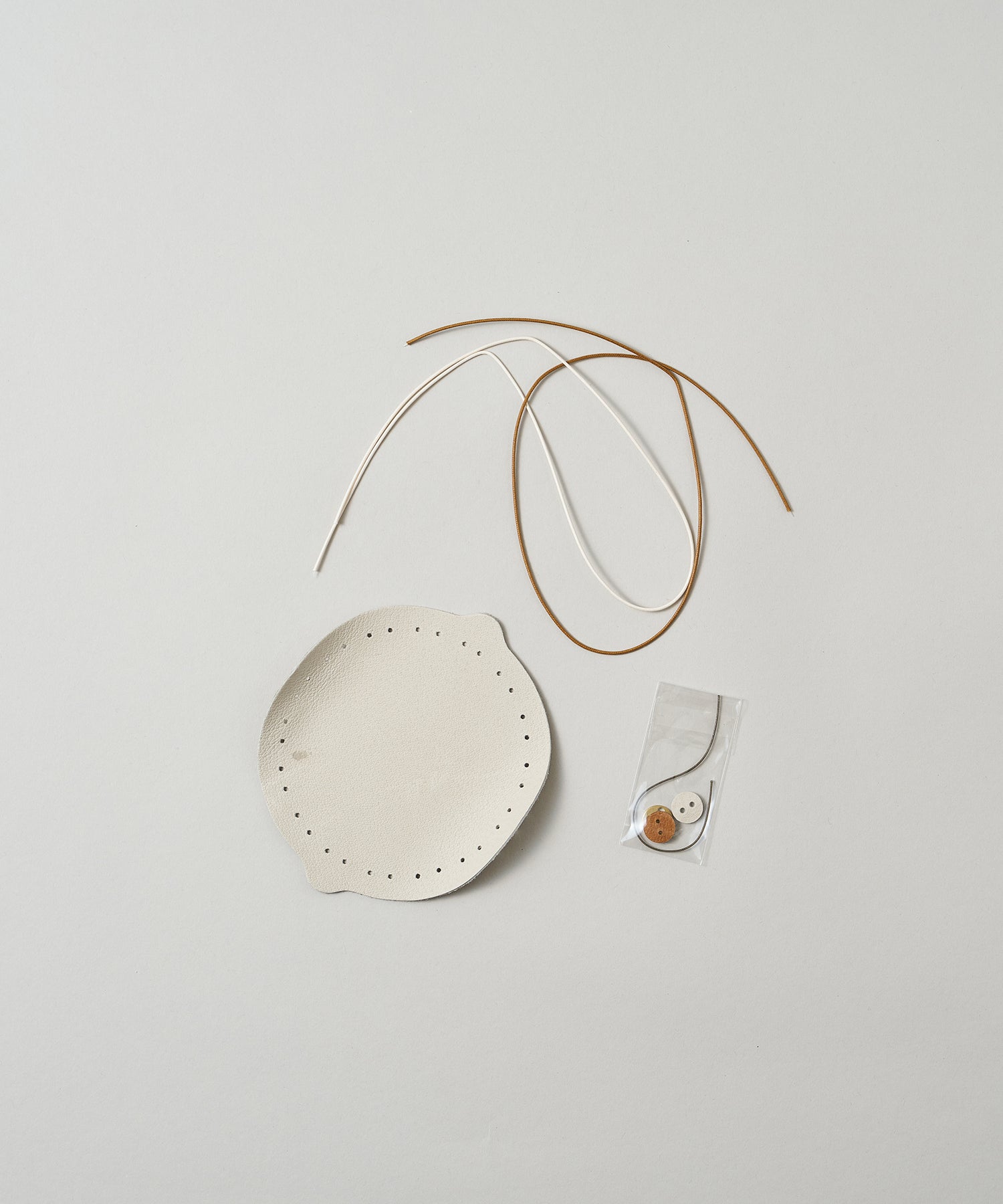 必要なものは、ハサミだけ。おうちで気軽にレザークラフトが楽しめる『ワークショップキット』。キットに入っている革パーツを組み立てると、小さなレザー巾着が完成します。